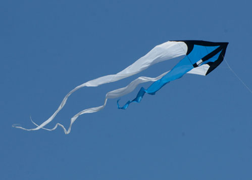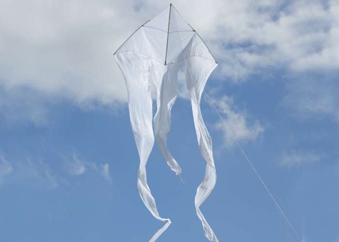 Dank der langen Flowtail-Schwänzen aus Taffeta-Nylon fliegt dieser Drachen so gut, dass er am liebsten für immer in der Luft bleiben möchte.