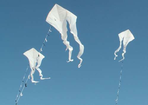 Der Custom White wird oft bei Drachenfesten für nächtliches Drachensteigen verwendet und dann mit Scheinwerfern beleuchtet… gruselig!