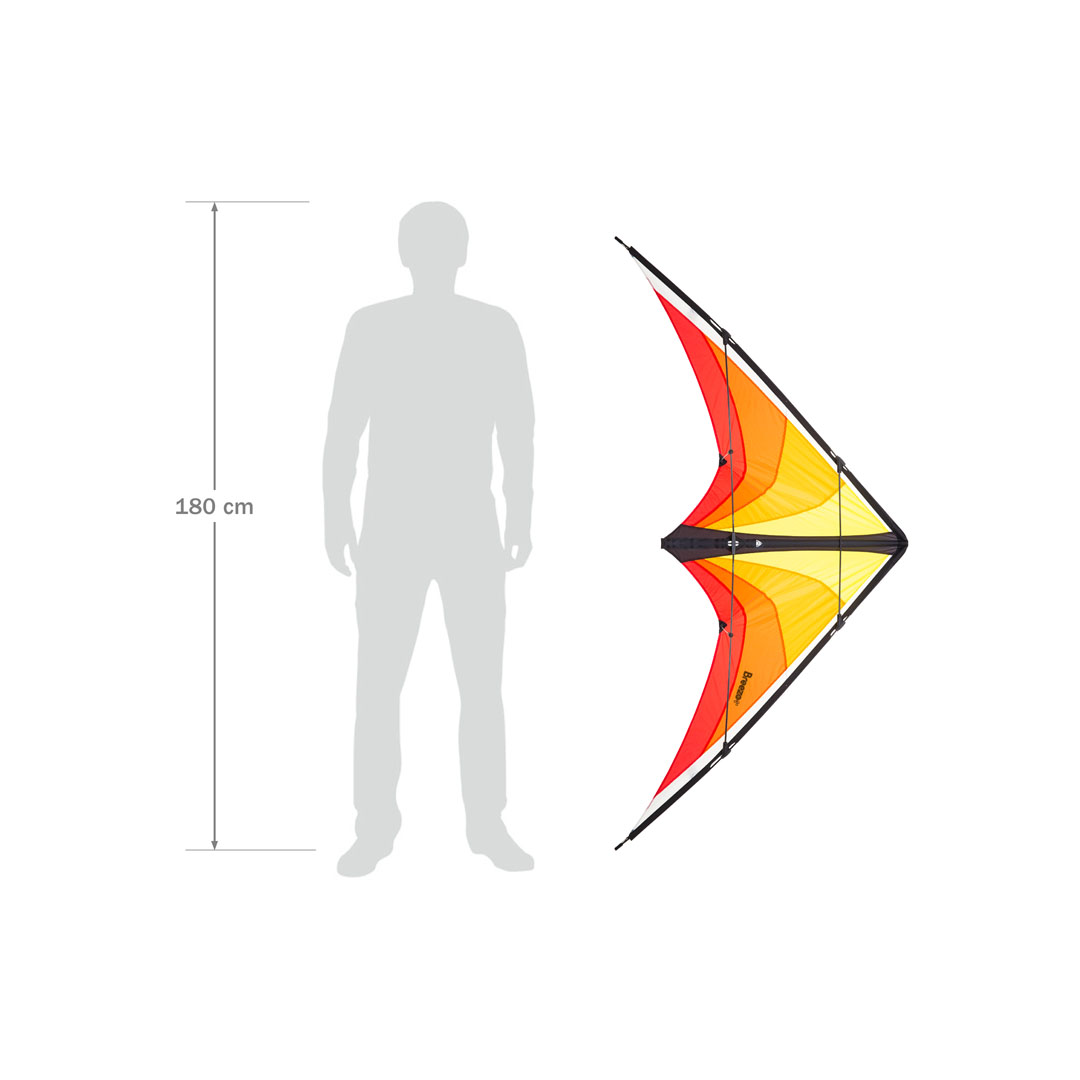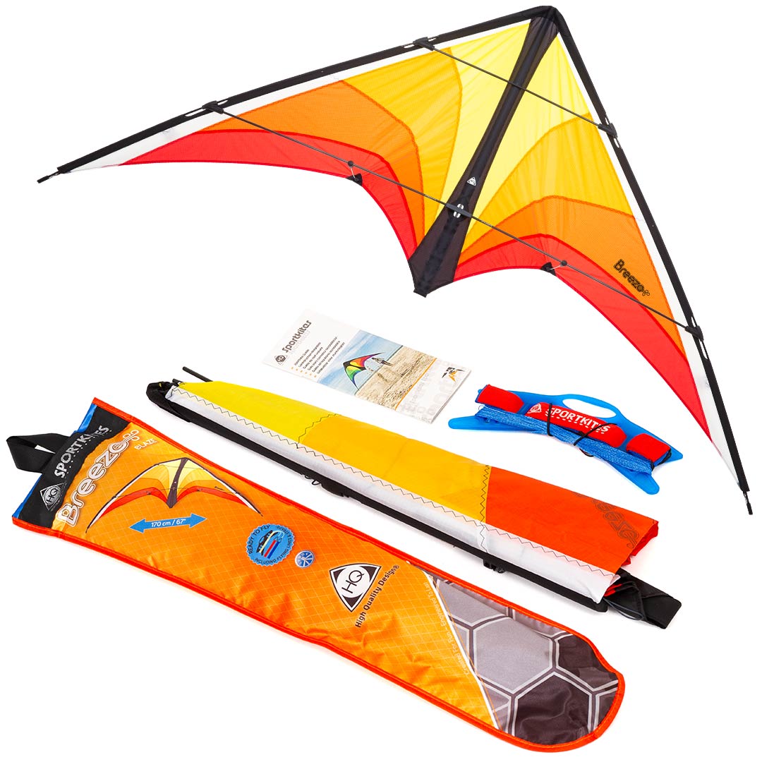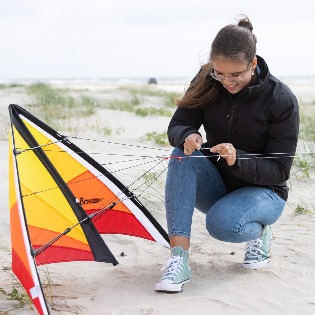 Dank seiner robusten Konstruktion aus Fiberglas- und Hybridstäben hält der Breezo unsanften Landungen stand. Ein Segel aus reißfestem Ripstop-Polyester sorgt für Langlebigkeit.