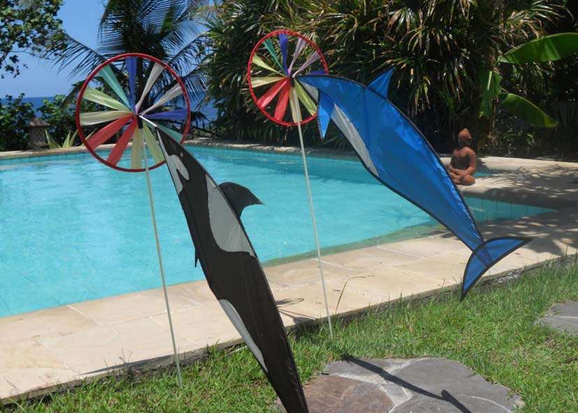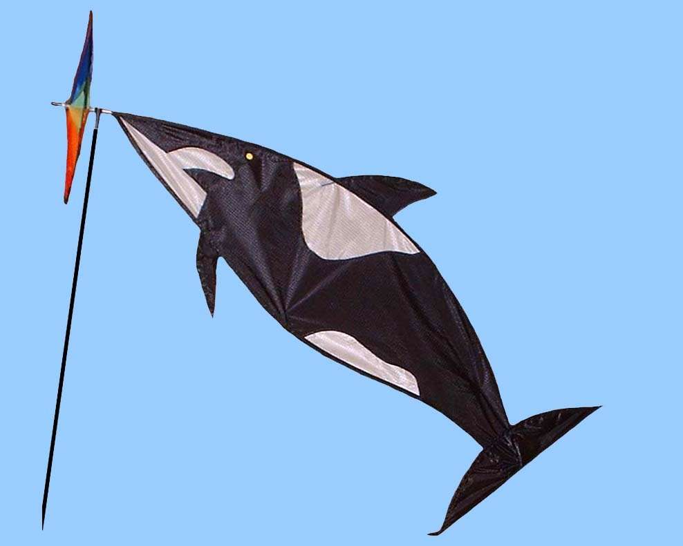 Beliebtes Windspiel in Form eines Orcas. Während sich das Rad im Wind dreht, zeigt der Orca die Windrichtung an. Ein lustiges Dekorationselement, das zum Glück nicht beißt. Eines unserer ältesten Windspiele.