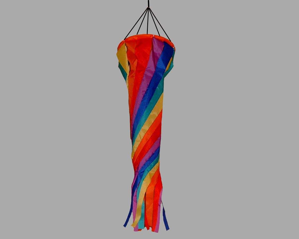 Kleinere Windturbine. 12 Farbbahnen. Die Windturbine Regenbogen 70 nutzt ausschließlich die 6 Primärfarben des Regenbogens: Rot, Orange, Gelb, Grün, Blau und Violett – immer in dieser Reihenfolge, genau wie in einem echten Regenbogen. Bei dieser 12-farbigen Windturbine erscheint jede Farbe zweimal und erzeugt so einen doppelten Regenbogen.