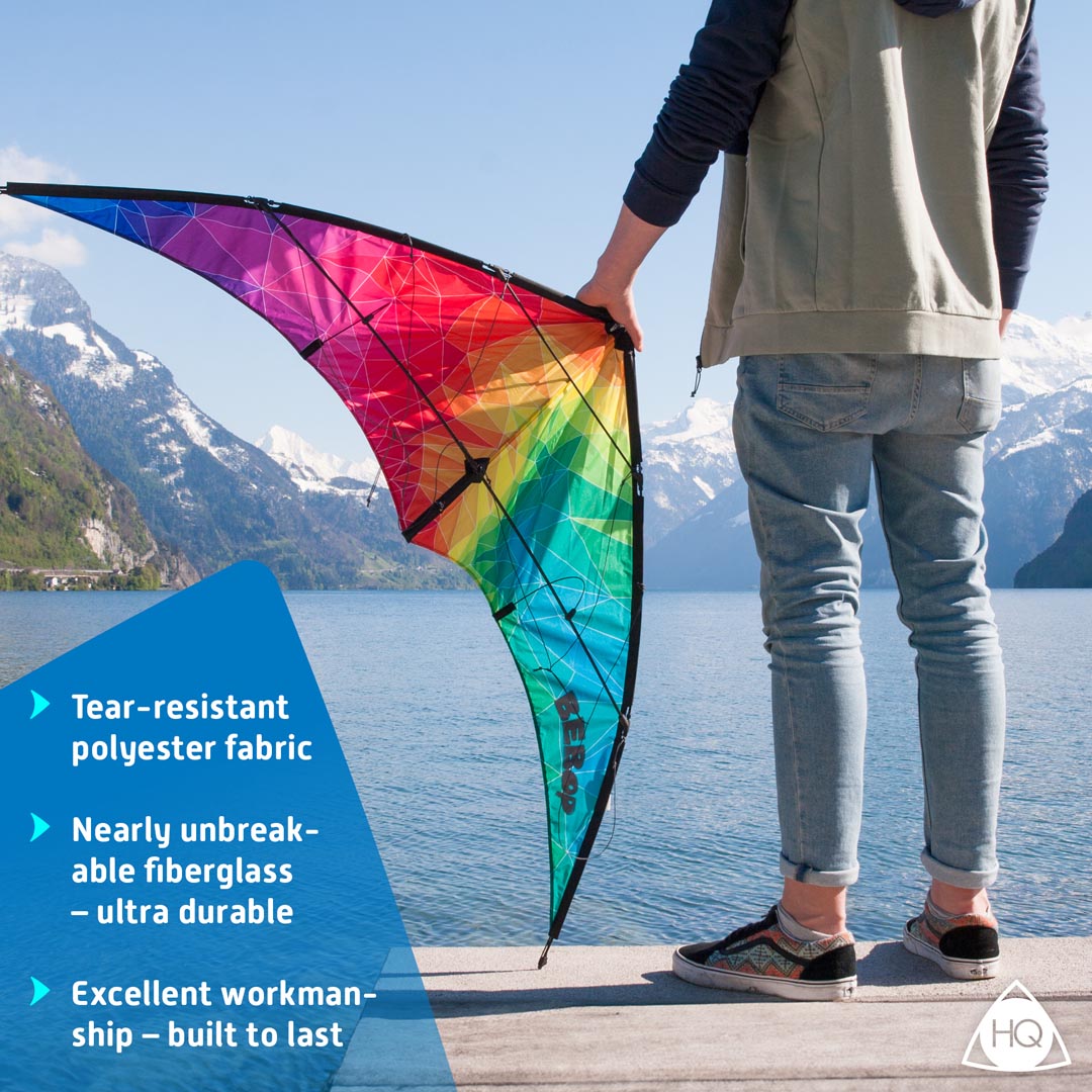 Voorzien van glasvezelbuizen van 4 en 5 mm en een sterk doek, blinkt hij al uit bij weinig wind en is hij flexibel en duurzaam genoeg om gemakkelijk crashes te weerstaan.