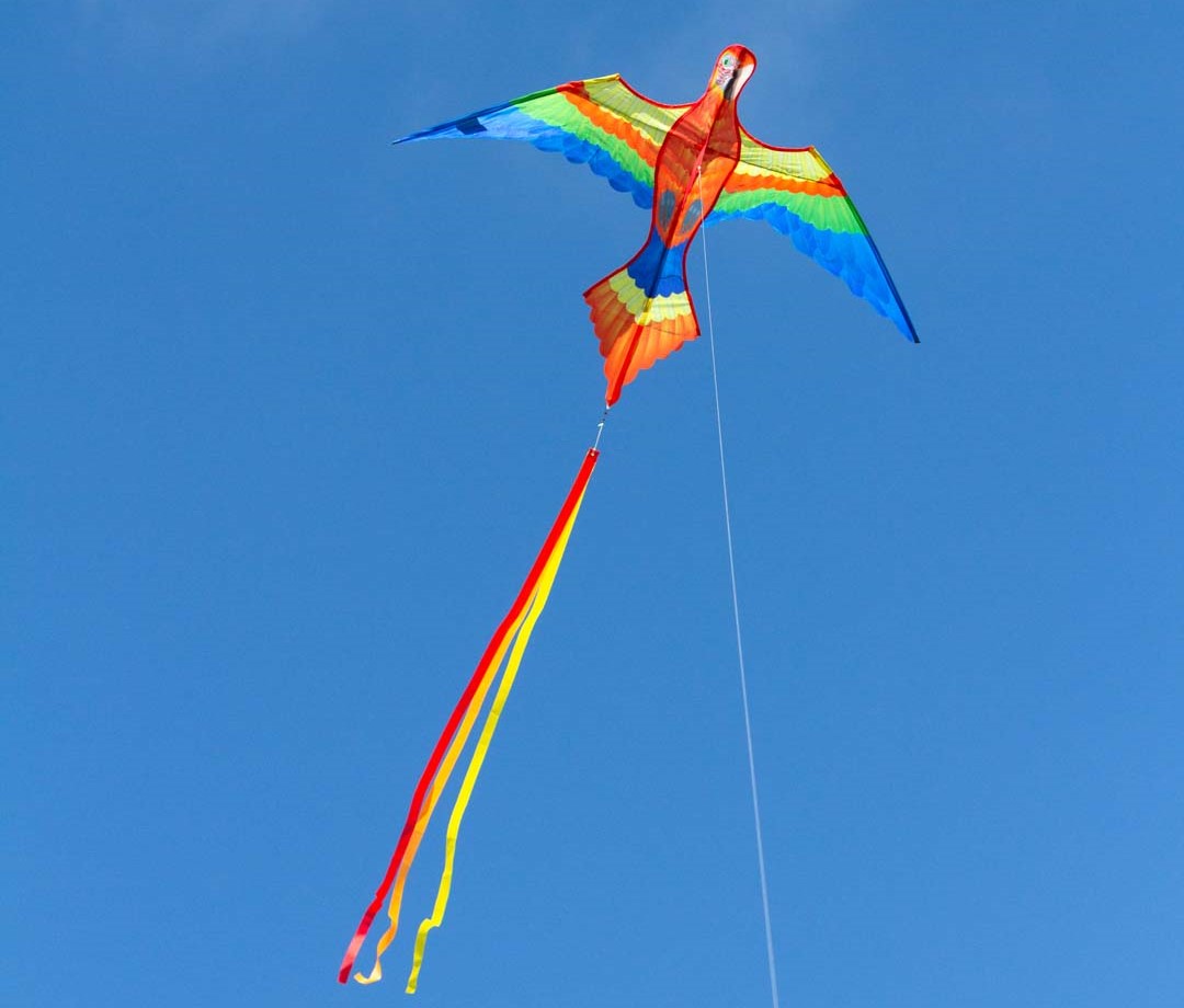 Deze large-size Parrot Kite 150 vlieger laat je zo uit de hand op en door de lange staarten (bijna 2 meter lang!) vliegt hij uiterst stabiel, maximaal vliegerplezier voor een minimale prijs. Geschikt voor alle leeftijden.