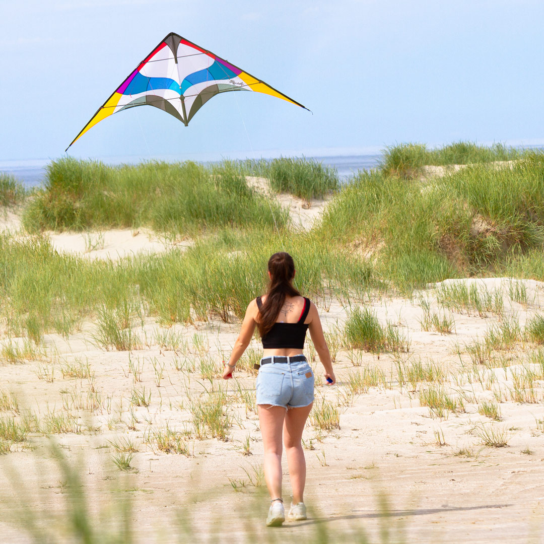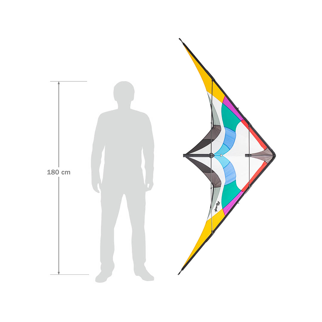De opvolger van de Maestro III zet nieuwe maatstaven in de wereld van freestyle vliegeren. Met zijn moderne vorm en lichtgewicht 31g polyester doek zijn de vliegprecisie en de uitvoering van veeleisende tricksequenties verder verbeterd. Zowel klassieke “old school” moves als complexe “new school” trickcombinaties kunnen met indrukwekkend gemak en controle worden uitgevoerd. Dankzij hoogwaardige materialen zoals koolstofvezel en gewikkelde dynamische staven overtuigt de Maestro IV met uitzonderlijke prestaties en robuustheid. De snelle rotatie om de lengteas zorgt voor een nauwkeurige trickuitvoering, terwijl de gematigde vliegsnelheid en het voorspelbare vlieggedrag hem tot een eersteklas keuze maken voor zowel beginners als ervaren piloten. De meegeleverde gewichten van 15g zorgen er bovendien voor dat de kite in een paar eenvoudige stappen nog beter in balans is voor specifieke tricks.