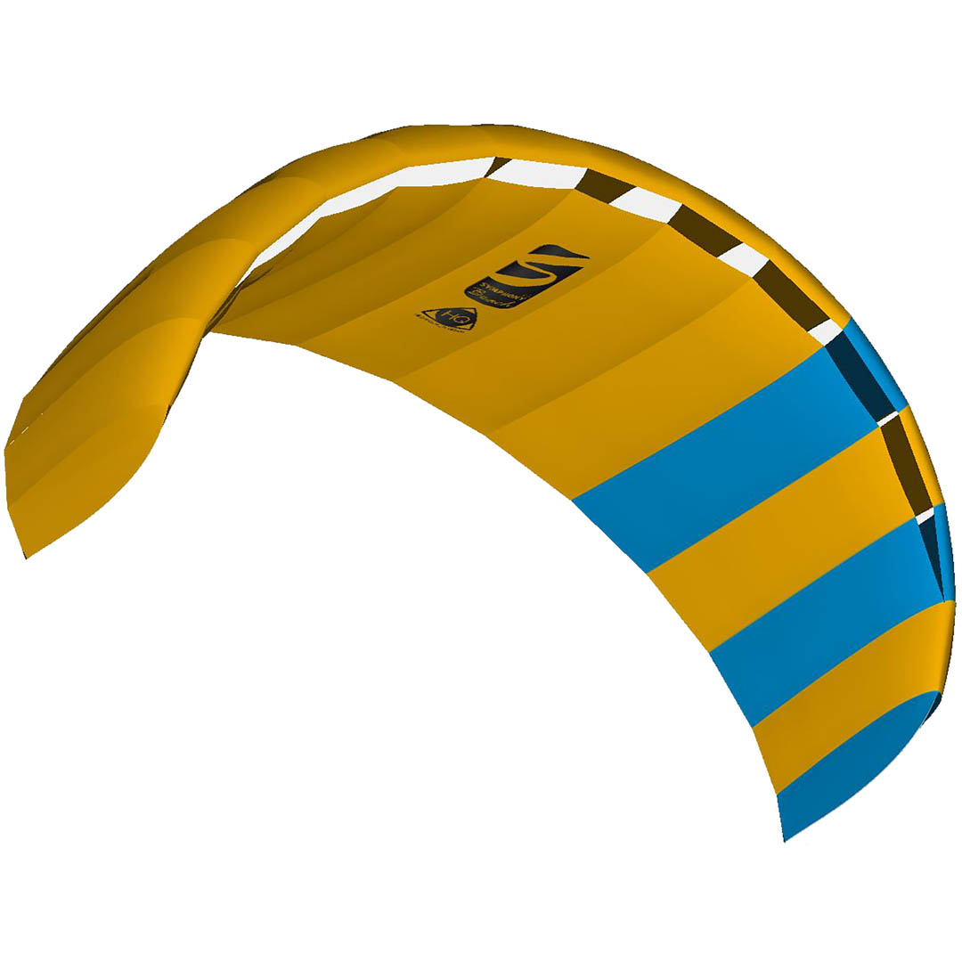 Symphony Beach 2.2 Blue/Gold | 220 x 73 cm. | 1,6m² | R2F |  2x25meter DyneemaLines 100daN | Leeftijd 14+ | Windkracht 2-6 Bft.