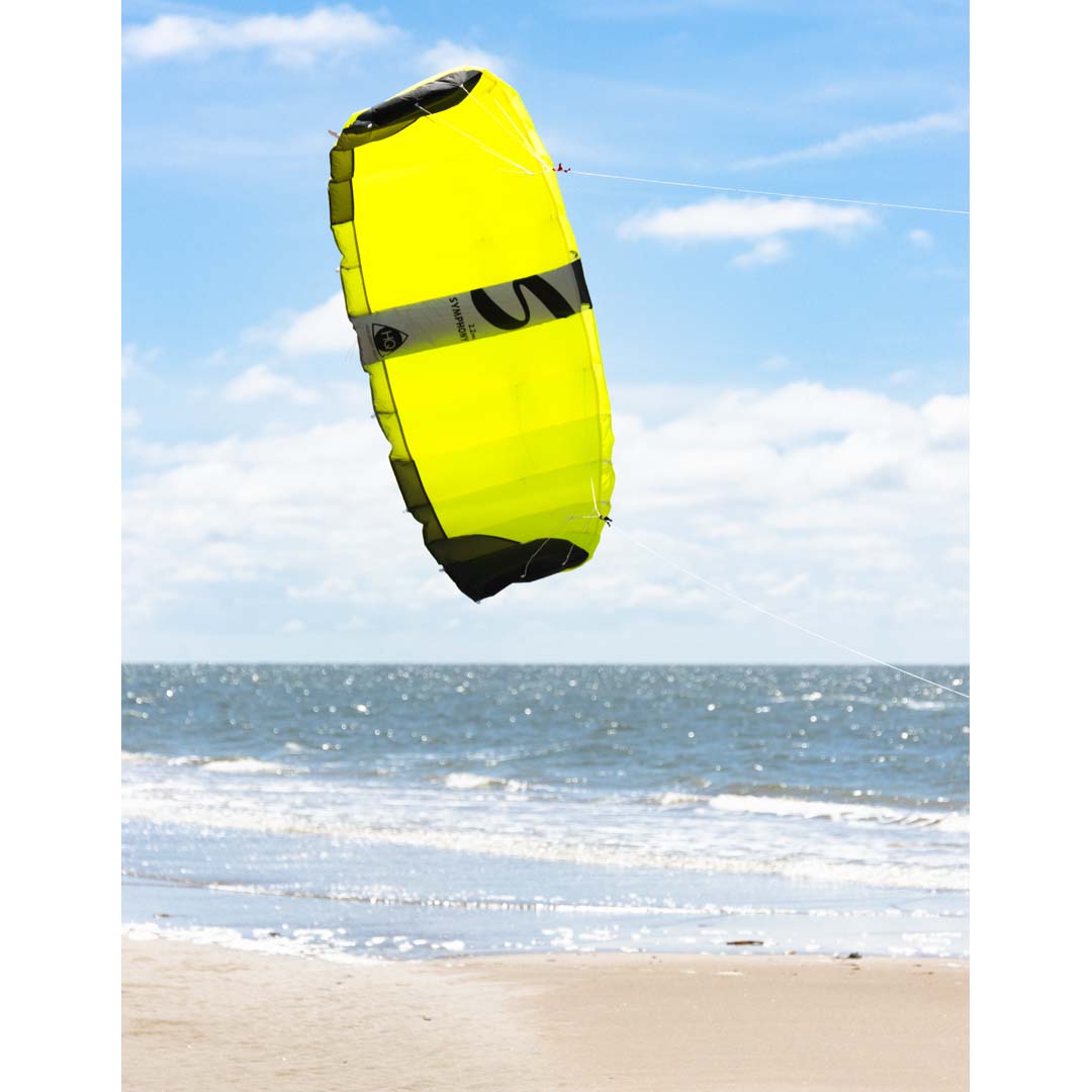 Het staafloze ontwerp van de Symphony Pro voelt solide aan. Omdat het een Ram-Air vlieger is, blijven de luchtkamers altijd gevuld met lucht en behoudt de vlieger altijd zijn vorm, ook in scherpe bochten. De grotere maten uit de Symphony Pro serie kunnen een behoorlijke trekkracht ontwikkelen, dus bereid je voor op deze uitdaging!